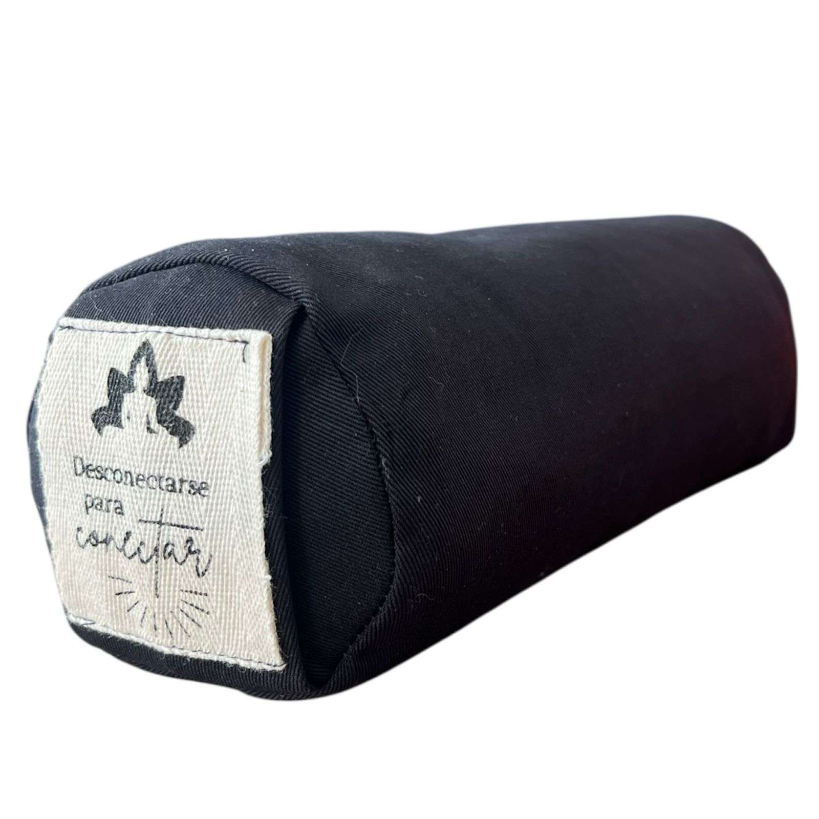 Bolster Pequeño Negro 26x9x9cm. Compacto y estable, ideal para soporte cervical, lumbar y posturas restaurativas en yoga y meditación.