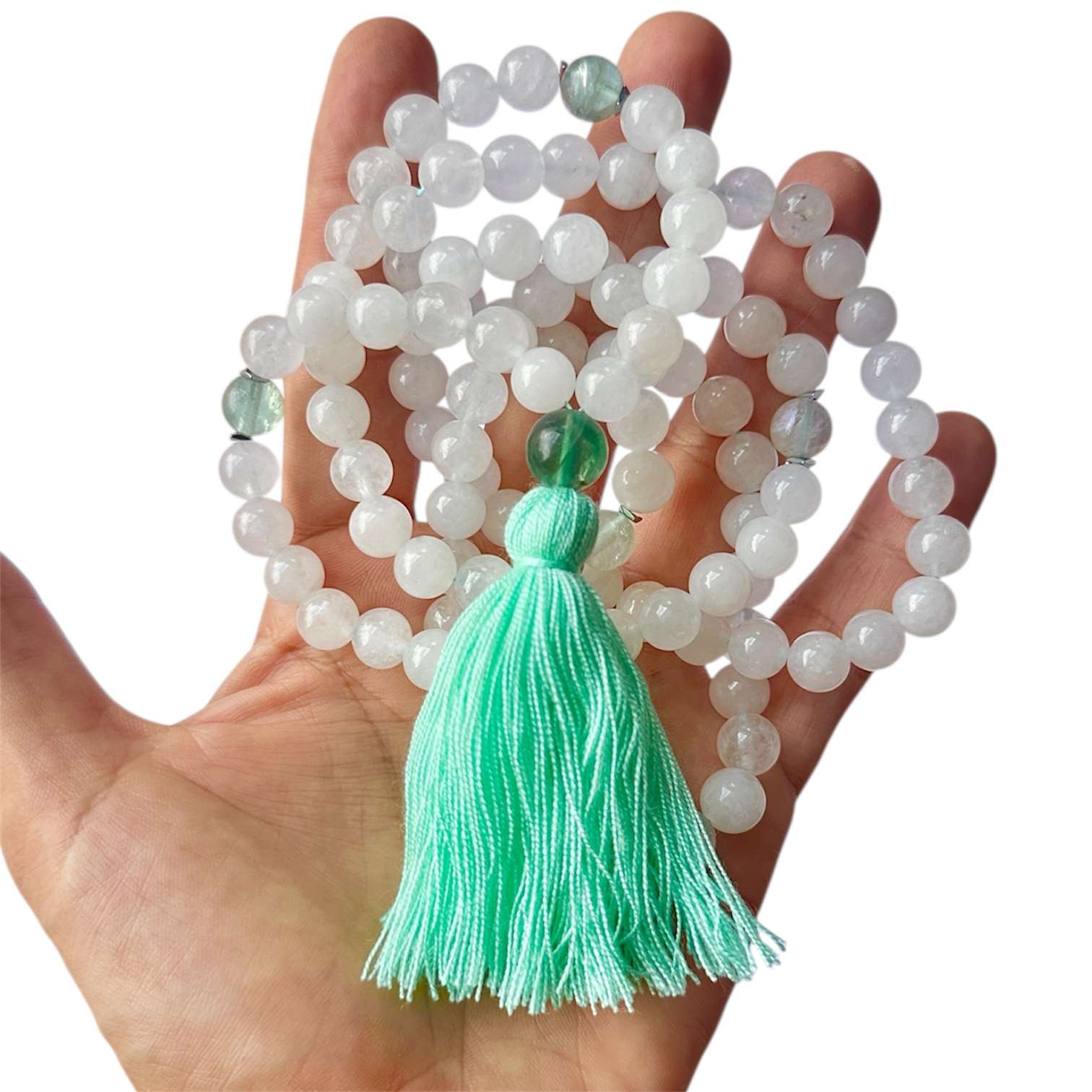 Cada Japa Mala Jade Blanco es única, elaborada con cuidado y atención al detalle, creada para reflejar la armonía y la serenidad de la naturaleza 🤍