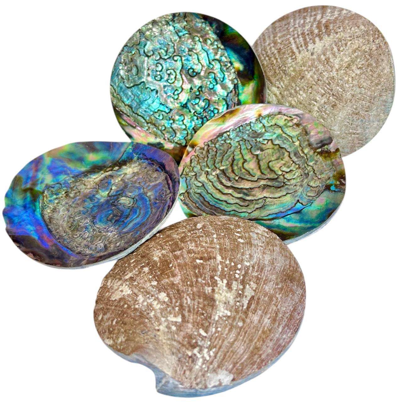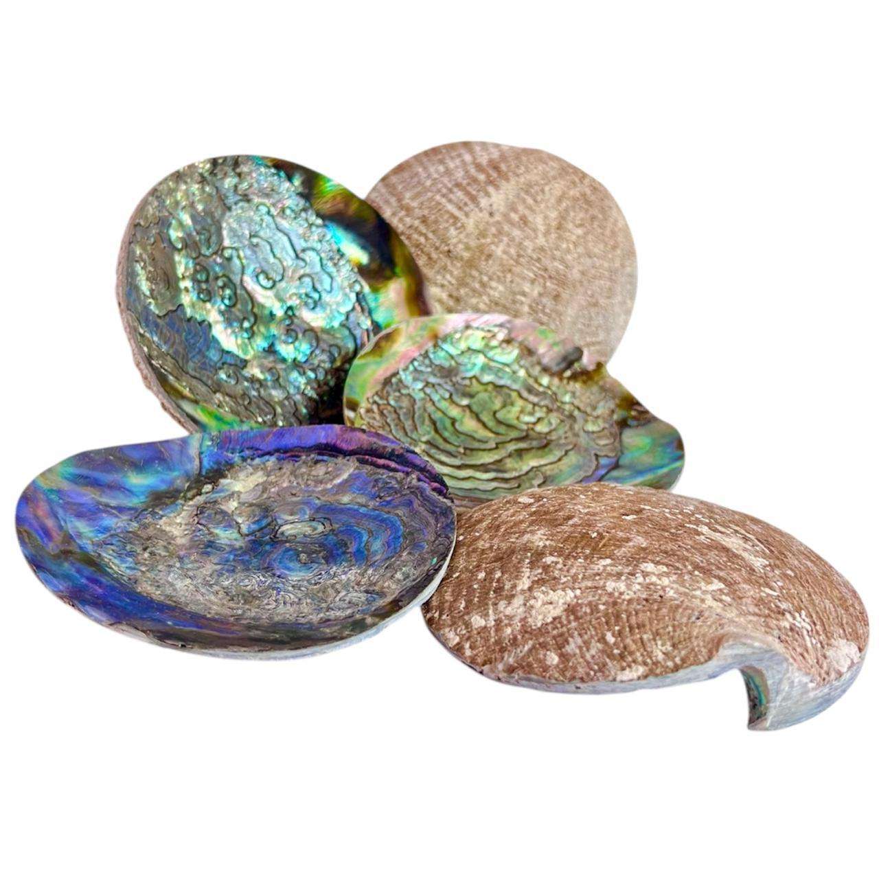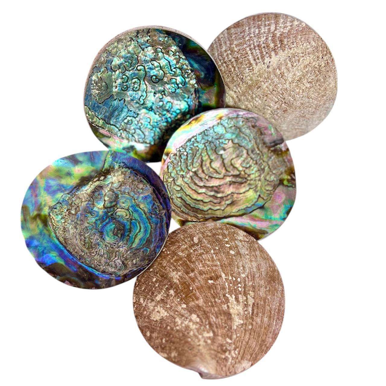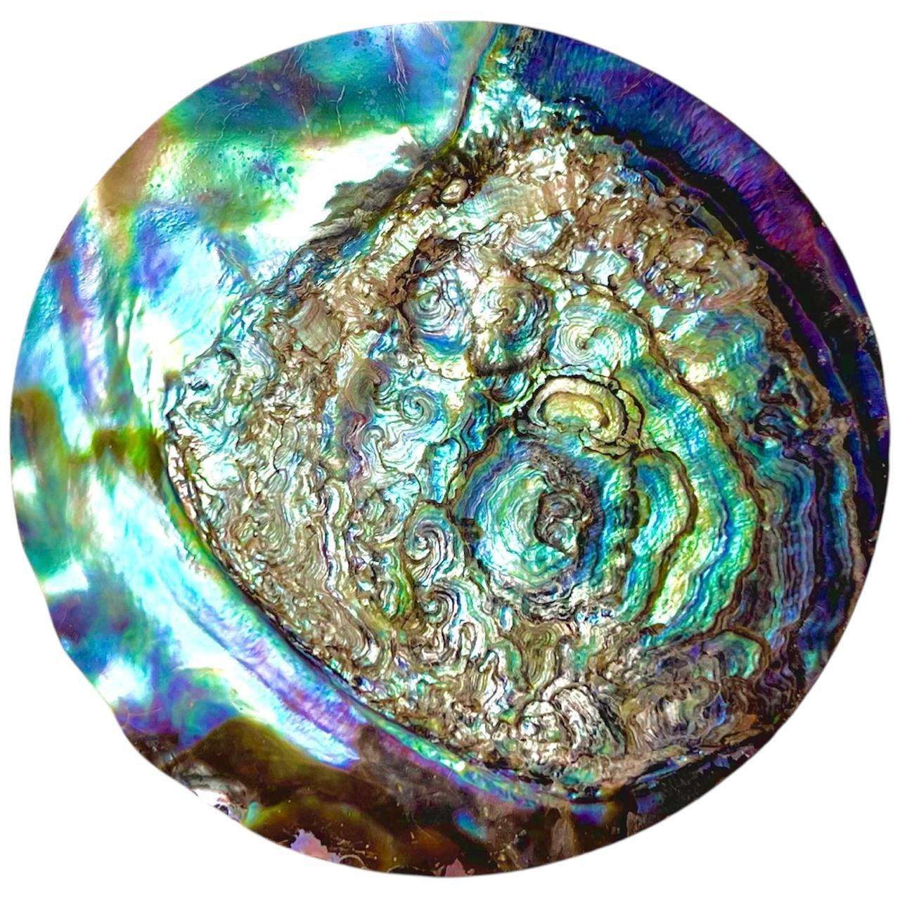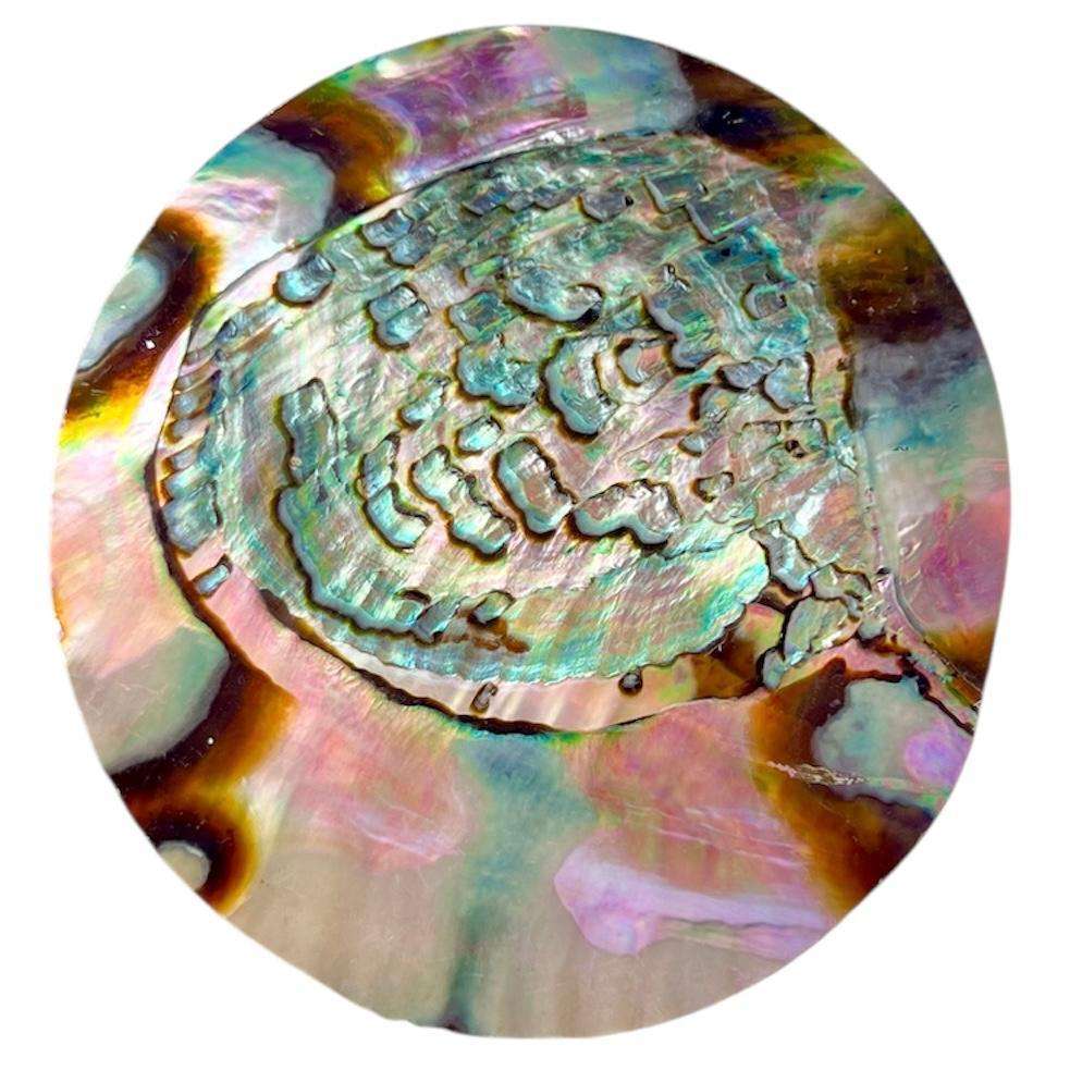 Plato de concha de abulón de 10 cm con brillo nacarado natural. Úsalo como sahumador, jabonera, porta llaves o decoración espiritual.